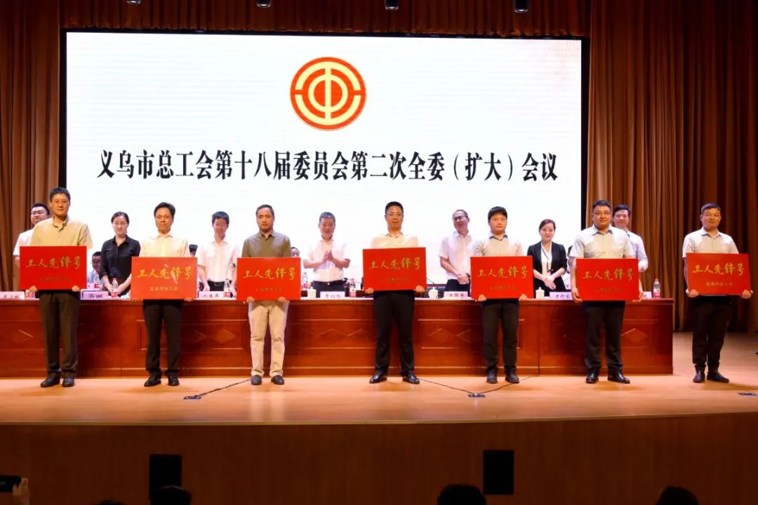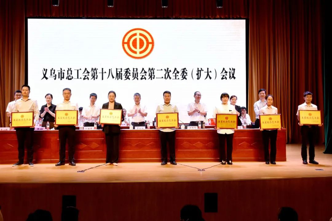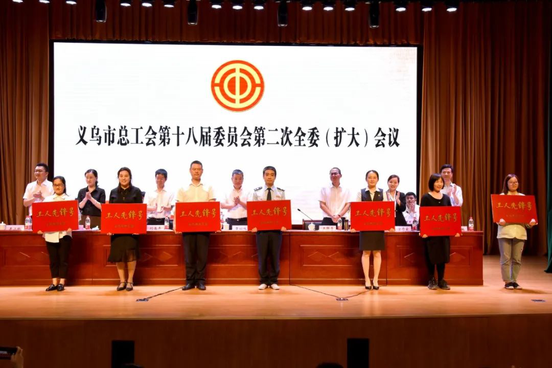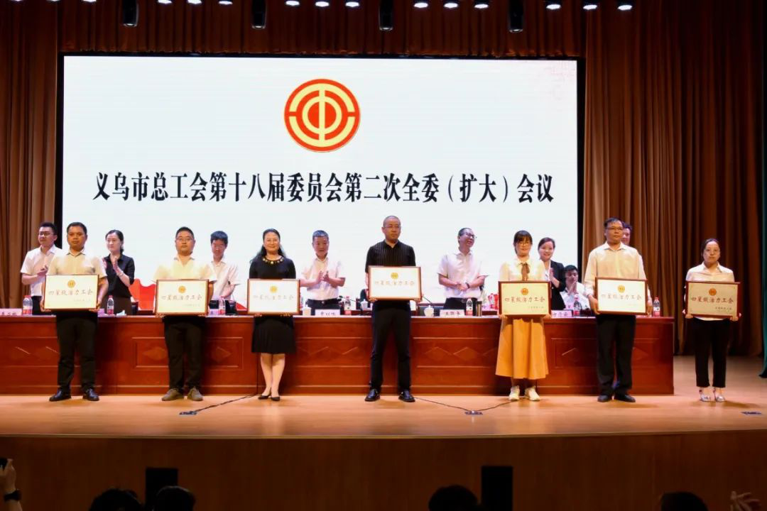 会议给“金华五一巾帼标兵岗”“金华五一巾帼标兵”及义乌市“五星级示范工会”“四星级活力工会”“工人先锋号”代表单位授牌。