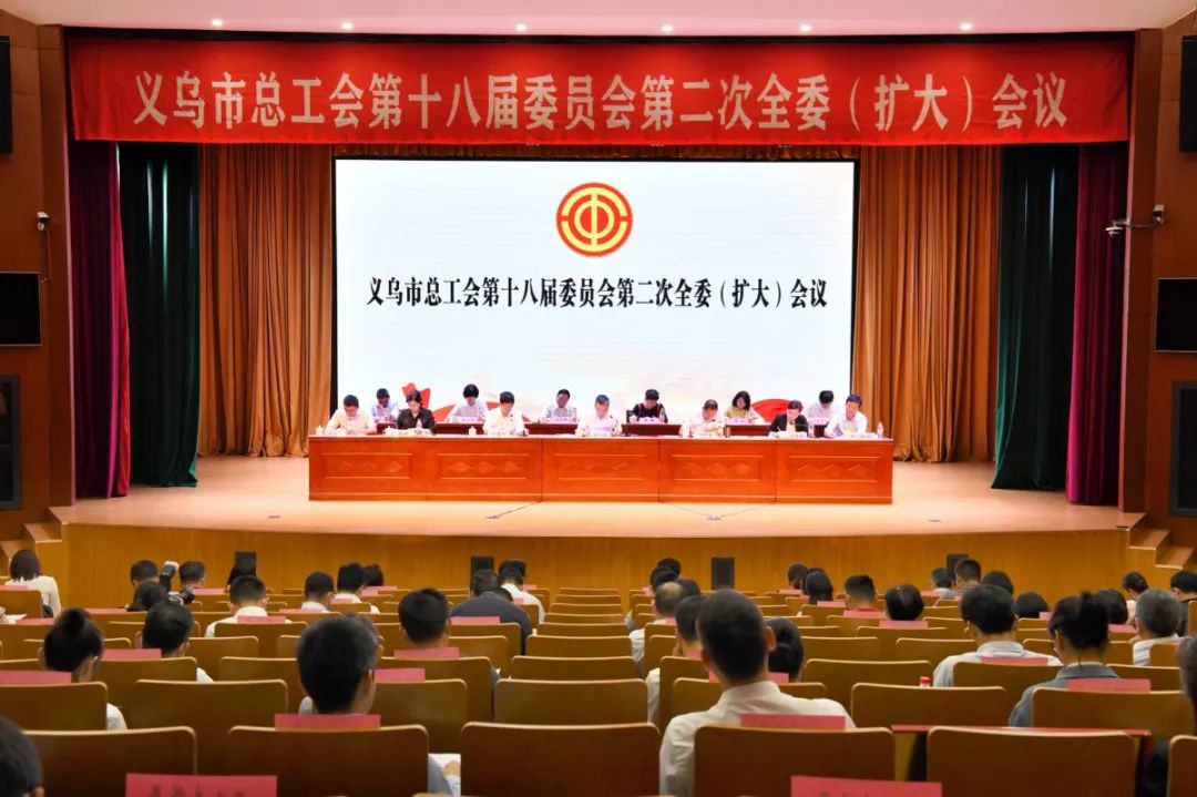 5月25日,市总工会第十八届委员会第二次全委(扩大)会议召开。市委常委贾以鸣出席会议并讲话。市总工会党组书记、主席王晖平作题为《勇担新使命 奋进新征程 为高质量高水平建成世界小商品之都贡献工会力量》的工作报告。